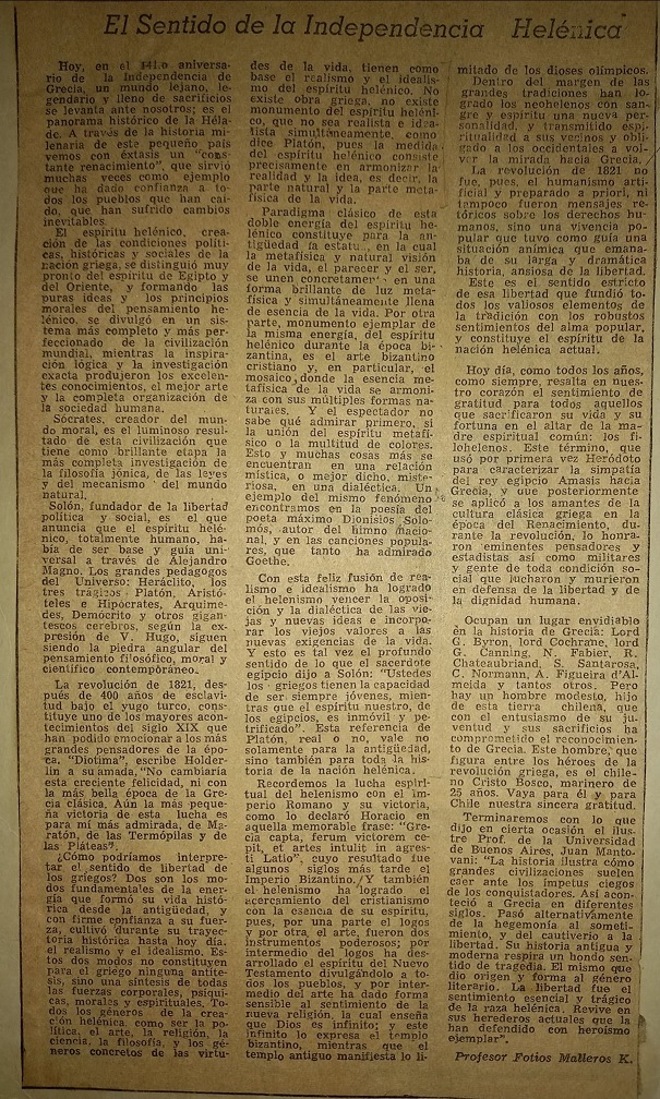 Como homenaje a los 200 años de la Revolución Griega, les dejamos este escrito que fue realizado por nuestro fundador